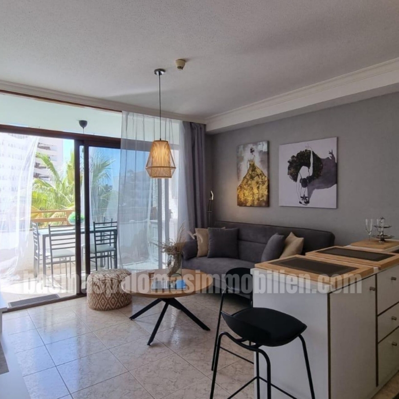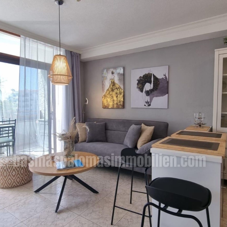 Genießen Sie das Beste von Gran Canaria in dieser hellen und gepflegten 46 m² Wohnung, nur 4 Gehminuten vom Hauptstrand von Playa del Inglés entfernt.